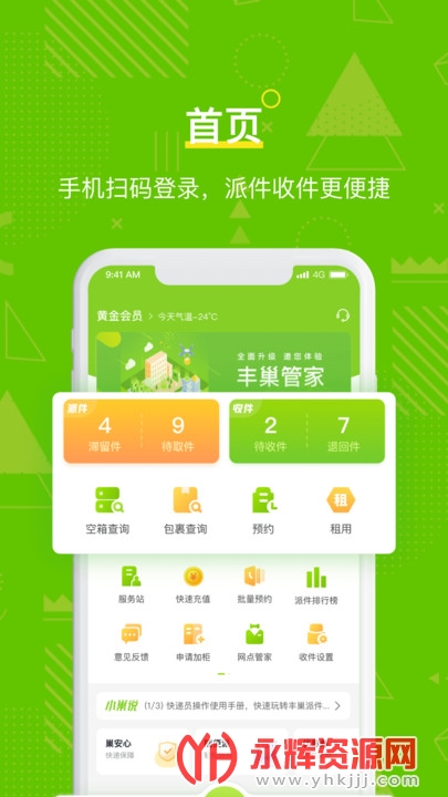 丰巢管家app是一款专为快递员打造的服务软件,这款软件能够帮助快递员随时查看收派记录和包裹状态,用户在手机上就可以查找到附近的丰巢快递柜,非常的方便快捷,有效的提高了快递员的工作效率。欢迎有需要的伙伴前来下载!