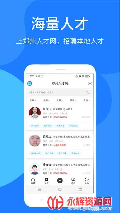 郑州人才网app是一款为郑州本地人打造的专业招聘平台,郑州人才网给众多的求职者们一个求职就业的机会,可以通过郑州人才网平台来了解最新的招聘信息服务,提高企业招聘效率,减少企业招聘成本,让用户都可以轻松的来寻找到适合自己的工作,求职者们随时来平台上进行查询哦!