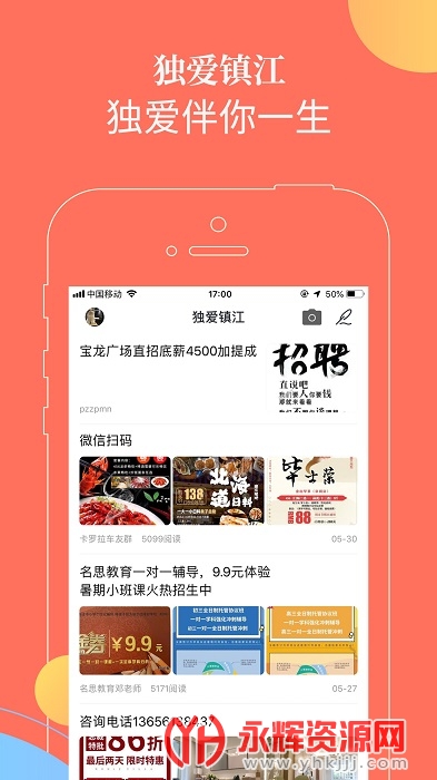 独爱镇江app是专为镇江本地人打造的朋友圈平台,你可以在这里找到感兴趣的圈子加入,和大家一起讨论生活等话题,并找到志同道合的伙伴。还可以在这里享受到诸多生活服务,这款软件涵盖了非常多的本地信息和服务,无论是查看最新的资讯,还是想吃美食,都可以在这里找到。是一款非常便民的软件。欢迎感兴趣的朋友前来永辉资源网下载!