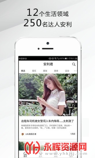 安利君有来自于12个生活领域的250名达人,集合了电影,音乐,APP,读书,游戏,美食,美妆,