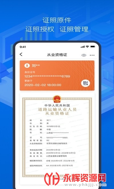 道路运输证和从业资格证三类电子证件的在线申领、亮证、授权等服务;