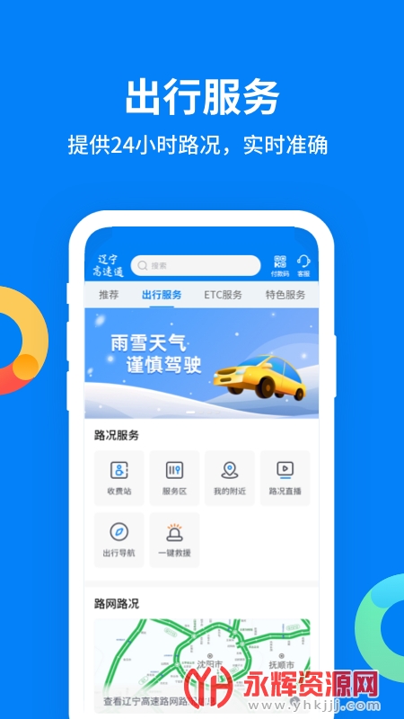 2.为公众出行提供高速路线查询,路况直播,车辆救援、定制我的路线等一系列高效,专业,方便的服务应用。