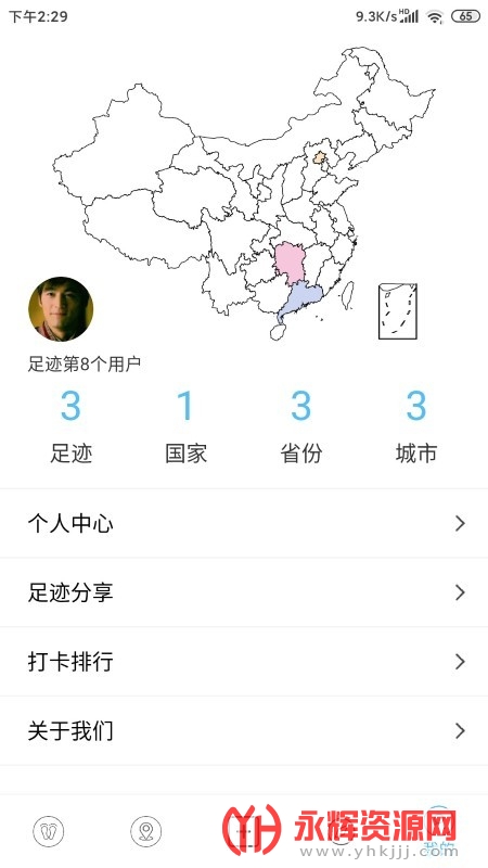 秀出你的足迹地图可以保存为图片,并通过微博,微信等分享给好友。