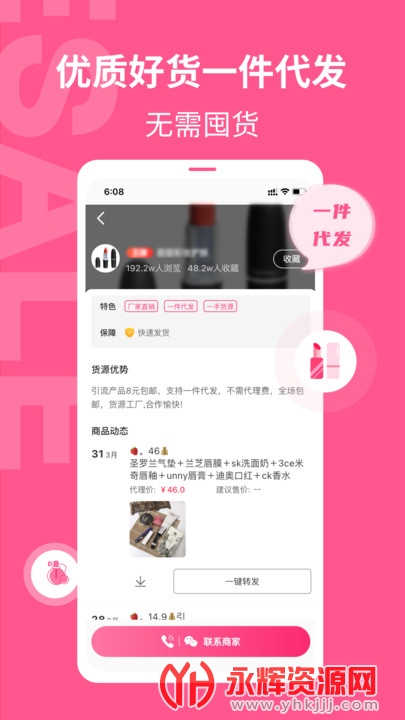 美妆批发app是一款为广大仙女朋友们提供的美妆购物平台,软件中有着超多精选的美妆用品,提供给大家都是批发价,有喜欢的朋友们快来永辉资源网下载吧!