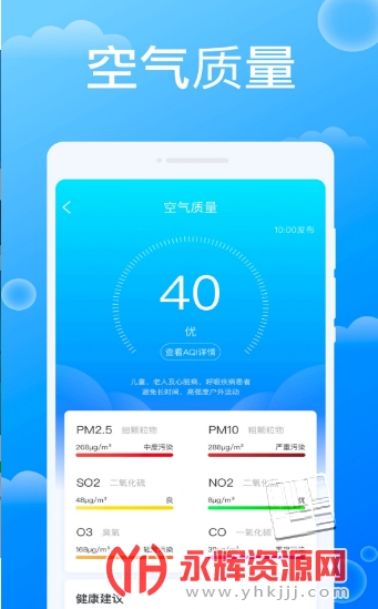 预测起来更加便捷,查看对应天气状态还有一些空气质量检测;