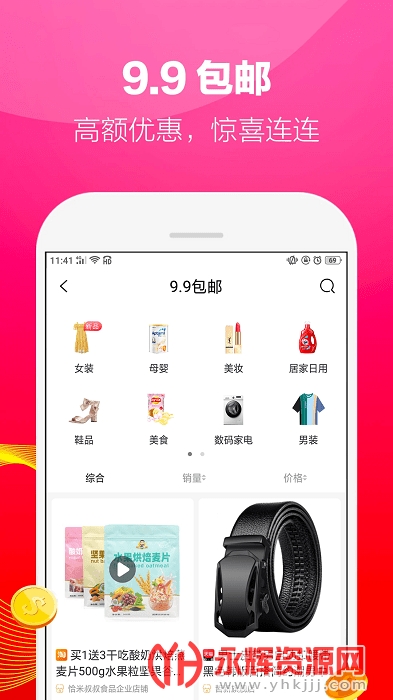3、9.9包邮-每日精选百款超值折扣商品,全场9.9元全国包邮,物美价廉。