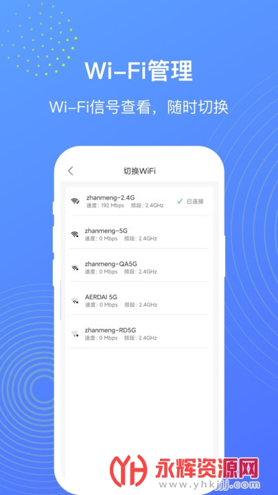 wifi管理大师app是一款实用的wifi连接管理工具,它可以快速的帮你搜索并连接上附近的wifi,让你轻松的观看视频或是打游戏,不用为流量而担心了。同时它还可以帮助用户管理wifi,包括wifi测速、信号加强等,让用户拥有一个更好的wifi体验。感兴趣就快来下载吧!