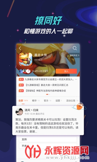 3、千万游戏玩家集聚九游论坛、公会,所以你不是一个人在战斗!