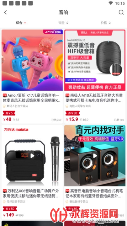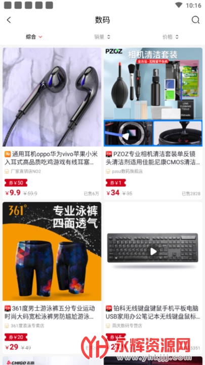 用户可以根据销量、综合或价格筛选要购买的产品,以便找到。