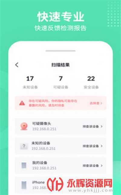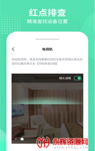 针眼查app是为经常外出的朋友们提供的隐私保护软件,使用这款软件你可以检测出酒店是否有隐藏摄像头来保障你的隐私安全,有需要的朋友们快来永辉资源网下载吧!