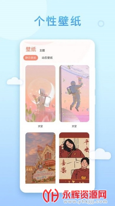 有潮流的高清静态、动态壁纸,同时提供好看的图片小组件和主题,满足用户的个性化需求。