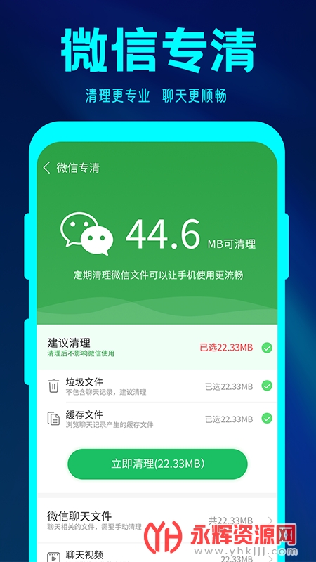 用户不用担心自己的重要文件被误删,轻松使用就可以简单的将手机后台的所有无用文件直接清理‘’