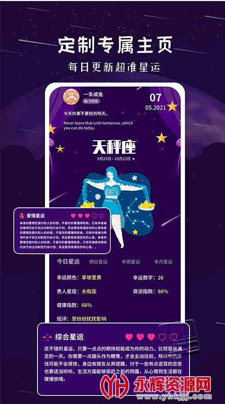 星座宝典app是一款十分优质的星座运势查询软件,在这款软件中你可以了解各大星座的详细解析,还能查看最近运势如何,对这款软件感兴趣的朋友们快来永辉资源网下载吧!