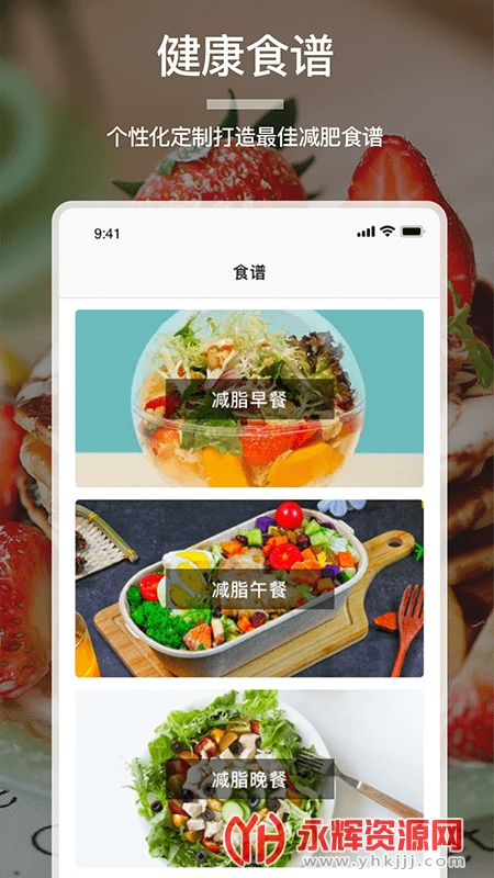 精选多个当下热门的减肥食谱,每个减肥食谱都有食谱介绍、每日食谱计划、使用人气、健康程度。