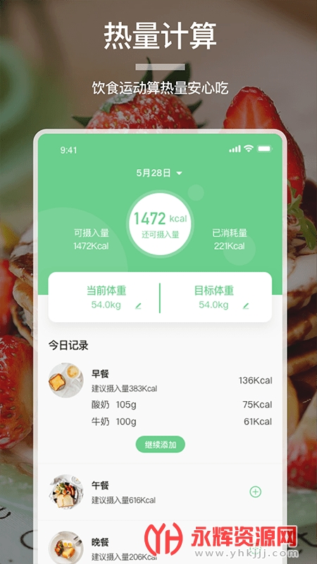 卡路里食谱大全app是必不可少的应用程序,卡路里食谱大全app简单轻松地帮您查找到您所需要食物的营养信息,以简单的方式来帮助记录您的饮食,运动量和体重变化。