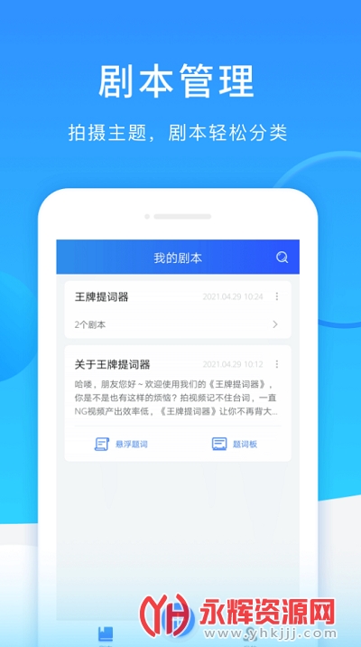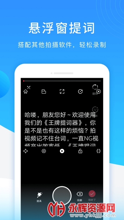 王牌提词器app是一款为经常拍摄短视频和直播的朋友们提供的掌上提词软件,使用这款软件让你拍摄更轻松,有需要的宝贝们快来永辉资源网下载使用吧!
