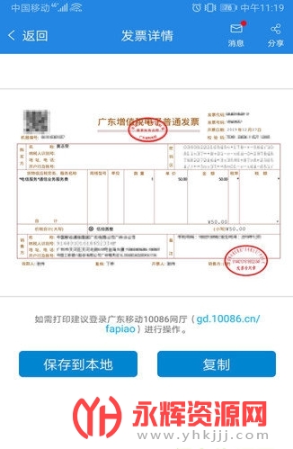 5、返回上一页查看发票,复制链接并在电脑浏览器打开即可下载发票PDF文件。