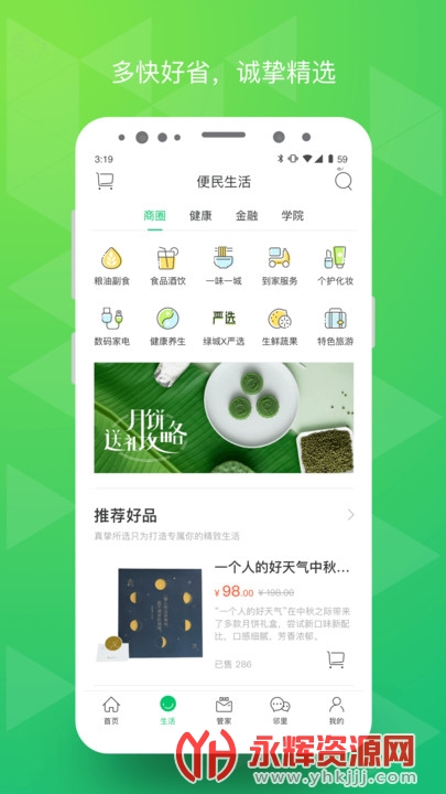 提供送水、家政、园区超市、生鲜配送、绿城精选等园区生活服务。