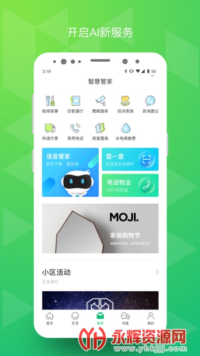 以维修报事、投诉表扬、生活缴费、访客管理、快递管理等基础物业服务为基础。