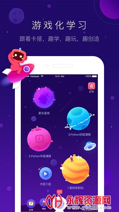 有道卡搭app是一款十分优质的编程学习软件,软件中有着多种趣味的编程学习模式,能让孩子们爱上学习,快来永辉资源网下载吧!
