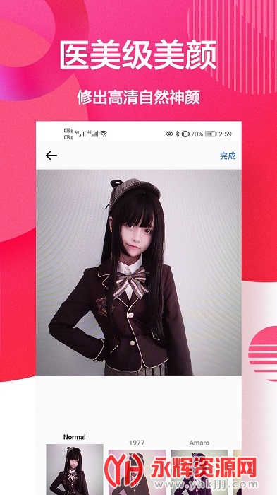 自拍美颜相机王app是一款专为女性朋友打造的美颜相机。自拍美颜相机具有实时美颜技术。它可以帮助您在用户拍照时美化照片。照片更方便观看。自拍美颜相机APP为用户提供了多种照片调整工具,可以对一些劣质照片进行微调,让您的照片更加优质,用户可选择此软件拍照。