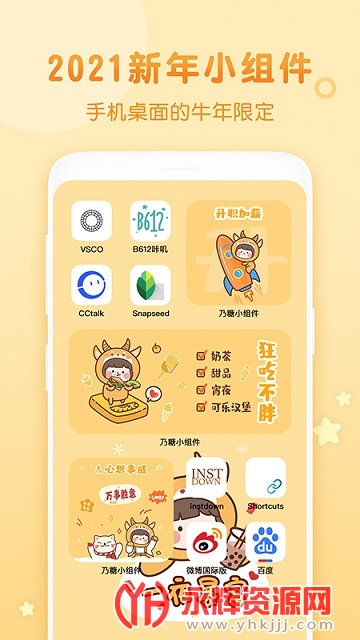 卡通小组件可爱小插件是一款非常不错的手机桌面主题美化工具软件,软件中为用户提供了非常多样的桌面组件可以使用,帮助用户轻松制作出想要的桌面主题效果来,还可充当你的各种倒计时小工具,超多精美模板可选择,有兴趣的朋友就快来永辉下载体验吧!