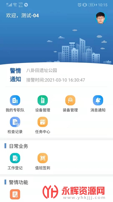 多种工作应用划分版块,工作应用中心将这些应用划分了常用、日常业务以及警情功能版块。