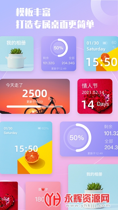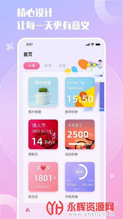 用户可以任意添加各种桌面插件,进行自由编辑,包含倒计时纪念日、每日步数、照片等等,非常便捷好用;