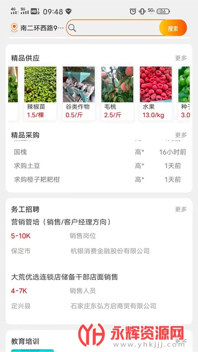 随时定位,搜索相关功能使用,提供海量农业供求信息撮合匹配、农业生产资料在线交易服务。