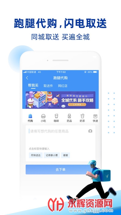 专业的进行跑腿配送的APP,在这里每一位跑腿人员在上岗前全进行过培训
