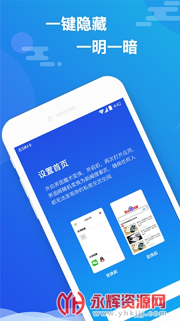 通过一键变换软件名称和桌面图标,让小隐大师彻底消失,除了你,再也没有人能找到,彻底的安全,彻底的私密.