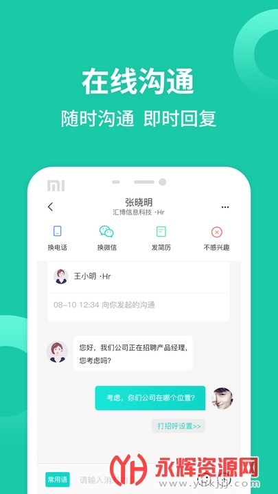 求职更高效:与HR在线畅聊,在家也能换工作。