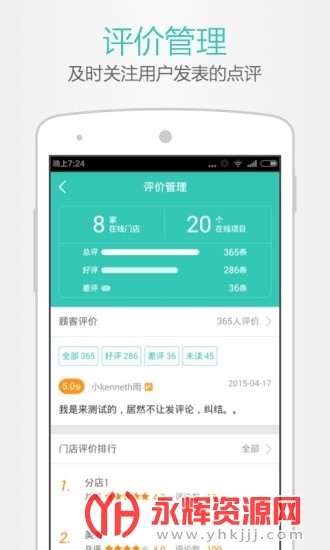 通过开店宝查看用户对门店的评价,及时互动,营造良好口碑。