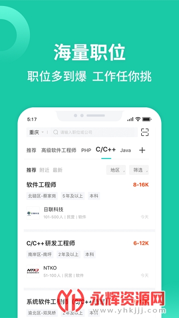 汇博人才网重庆招聘是一款非常不错的线上求职招聘服务手机软件,软件专门为重庆各个地区的朋友打造了一个功能全面的线上招聘平台,在这里用户能够非常轻松的找寻到各种适合自己的工作,非常的方便实用,有需要的朋友就快来永辉下载体验吧!