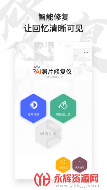 AI照片修复仪最新版是一款非常不错的掌上照片修复工具手机软件,软件能够帮助用户来修复美化各种类型的照片,不论是清晰度低的照片还是没有颜色的老照片,在这里都可以得到精致的修复或者是上色,非常的方便实用,有需要的朋友就快来永辉下载体验吧!