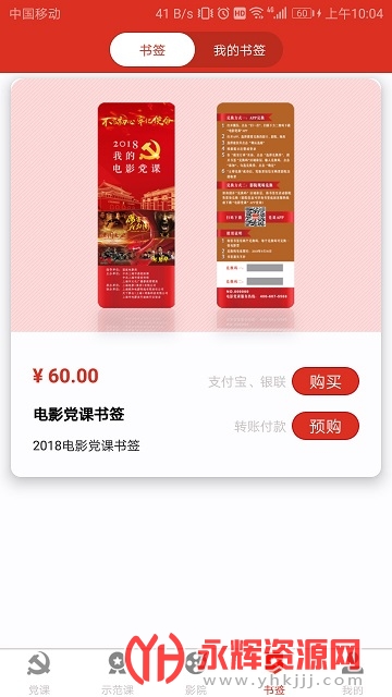 可以购买党课书签,并使用书签来兑换电影党课影票.