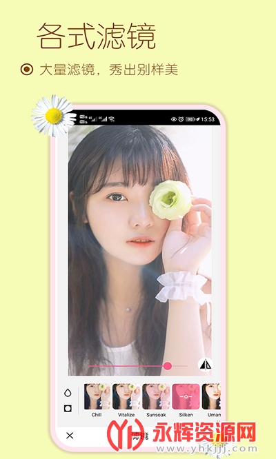每款素材都结合滤镜、边框和水印进行搭配,感受多样的拍摄乐趣,随时打造“私人影棚”