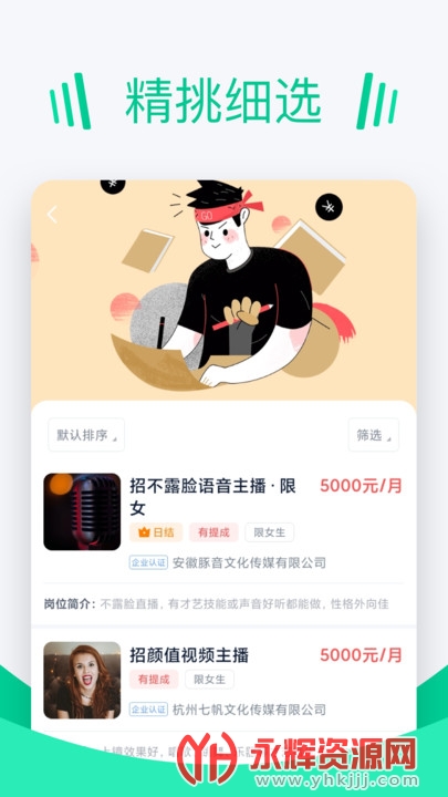 青团招聘app是一款好用的招聘求职软件。由杭州青团宝网络科技有限责任公司出品的移动客户端。这款软件上拥有海量的岗位,并且都是经过严格审核的,都是优质企业,确保用户能够找到安全可靠的工作。还可以通过搜索精准查找想从事的职业或公司,好工作不容错过!有需要就来永辉资源网下载吧!