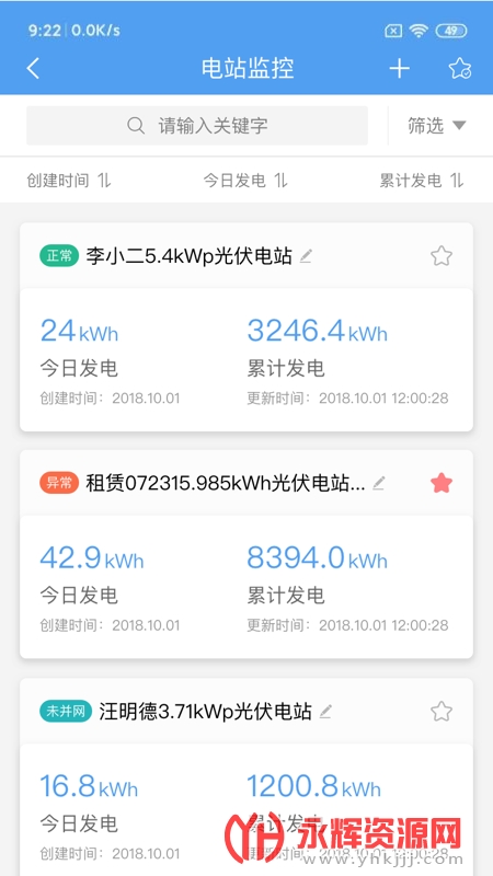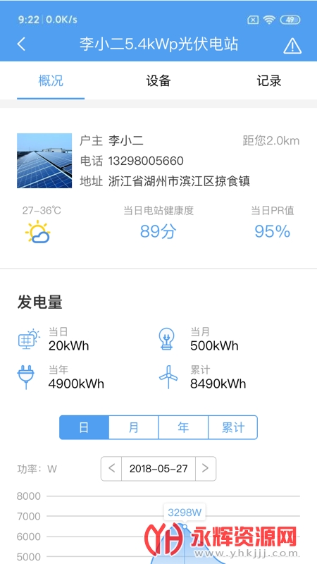 用户可远程实时监控电站发电数据,查看电站健康度,理论发电量对比和历史数据查询,附近电站功率对比,电站设备管理;自动识别发电异常电站!