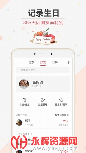 2、网络备份和恢复功能,不同设备数据通用,让您的生日信息永不丢失。