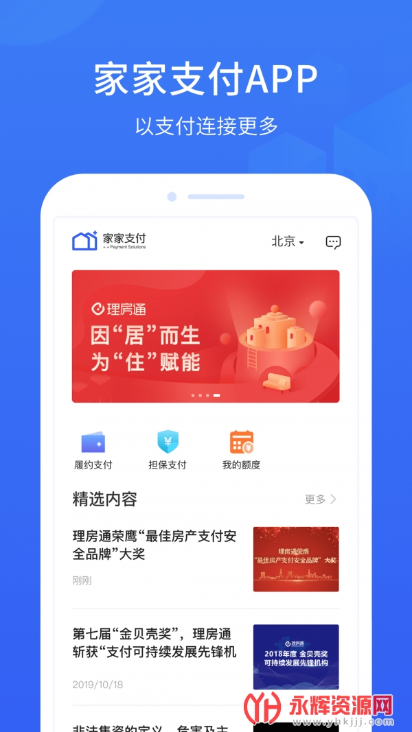 家家支付app是一款综合性的金融服务平台,为用户提供便利的金融服务,在这里为用户提供资金担保为,平常房产交易时需要担保证明,为用户提供安全的保障,获取正当的合法权益,用户可以放心使用这款软件,有需要的朋友欢迎来永辉下载站下载!