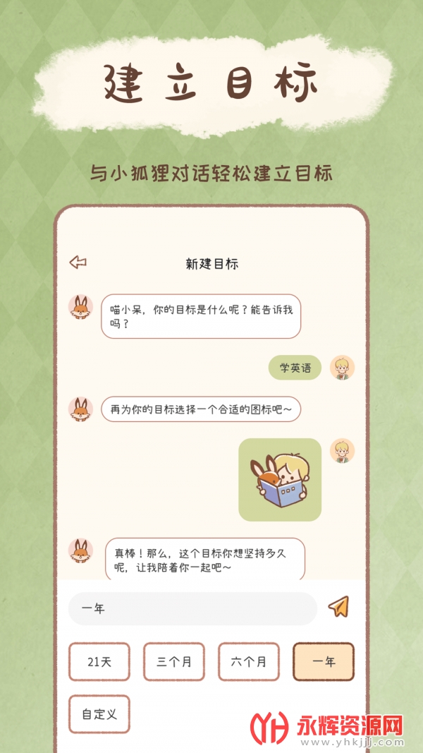聊天式目标新建,快速建立你的小目标;设置打卡周期,制定适合自己的打卡范围;