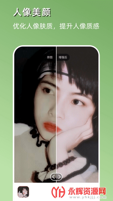 网络上的图片经过尺寸和大小的压缩后,画面出现压缩痕迹,造成画质和颜色丢失,你我当年对常见的网络图片有较强的画质增强能力,改善照片中人物肌肤、衣服、背景的细节,让网络图片重新恢复光鲜亮丽.