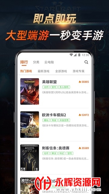 当下热门的游戏资源均汇聚到了这里,通过这款软件,可以在线试玩,无需下载,不用担心占据内存的情况.