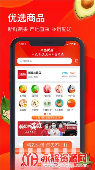 兴盛优选app是一款非常好用的家庭购物软件,软件中有着超多优质的蔬菜、水果、生鲜产品,还有许多日用百货,质量都是有所保障的,有需要的朋友们可以来永辉资源网下载使用哦!