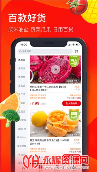 品类齐全,任您挑选:水果馆,蔬菜馆,肉肉馆,家禽馆,蛋蛋馆,水产馆,豆腐馆,牛奶馆,烘焙馆,休闲零食,酒水乳饮,粮油调味,家居家清,美容个护等等,每日新鲜上架,供应天天到位,满足您的家庭生活一站式消费需求。