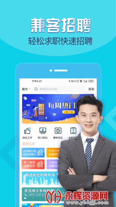 兼客招聘APP,致力于打造城市服务业一站式招聘求职平台,覆盖全职类、兼职类工作。