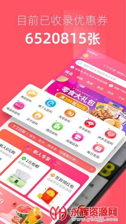 丁丁打折APP,年轻人都在用的省钱APP,一款专注于商城优惠券,外卖红包免费发放、网购省钱的返利APP。