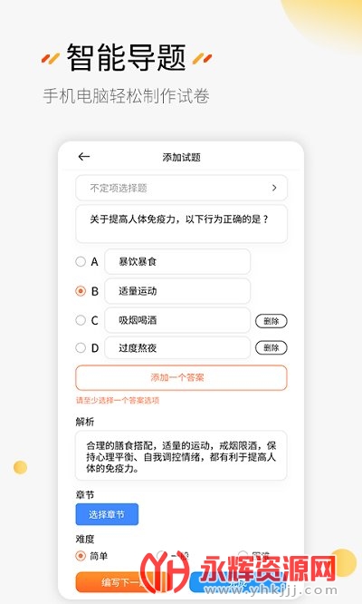 作者可以通过刷题神器内置的试卷编辑器,利用碎片化时间随时随地制作编辑试卷.手机上的试卷也通过电脑导出,方便用户使用电脑继续编辑.