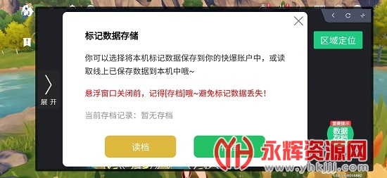 为了方便玩家在快爆app、悬浮窗、其他设备等不同场景中,标记状态数据同步使用。好游快爆app原神地图资源查询器提供【数据存档】功能,小伙伴们在工具使用后,点击数据存档将自己的标记数据记录保存到快爆账号中,在其他设备或场景点击读取数据,即可实现页面之间数据同步。